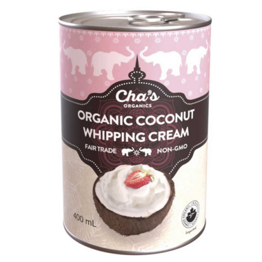 Cha's Organics now introduces Organic Coconut Whipping Cream. Refrigerate after opening.