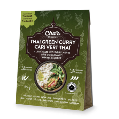 Curry Paste: water, organic green chili pepper, organic lemongrass, organic shallot, organic galangal, organic garlic, salt, organic coconut sugar, organic coconut oil, organic coconut vinegar, organic turmeric, organic Thai lime leaf, organic black pepper. Dried Herbs: organic Thai basil, organic lemongrass, organic Thai Lime leaf, organic galangal, organic chili pepper.