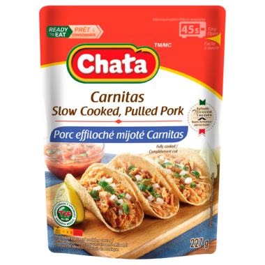 Chata selects the pork meat that is cooked slowly in the traditional way and with the seasoning that distinguishes the authentic Mexican recipe for carnitas de puerco.