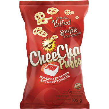 There is no better way to celebrate your Canadian pride than with the tasty crunch of tomato ketchup flavoured CheeCha Puffs. Just like no burger is quite the same without that red sauce, no line up of snacks would be complete without this Canadian classic. Each flavourful puff is speckled with that bright red seasoning like it was inspired directly by the Canadian Flag. So go ahead and savour that bold crunch sprinkled with national pride.