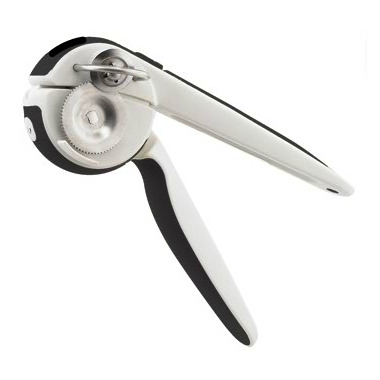 The EZ Squeeze removes lids quickly and easily with only one hand. Pierce the lid with the cutting wheel and with just a few simple squeezes of the Savvy Grip ratcheting handles the lid is free! The magnelift tip safely removes cut lids.