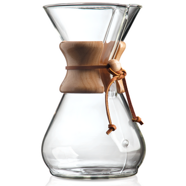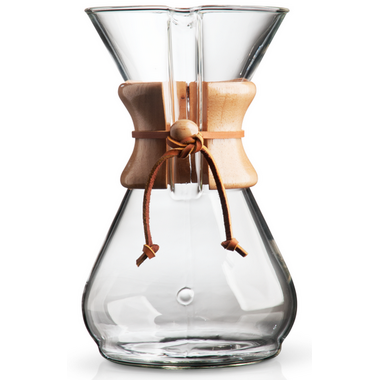 The classic Chemex is undoubtedly one of the most recognizable and elegant coffee makers available! This pour over coffeemaker, is made from non-porous, heat-resistant glass and is meant to b used with Chemex's proprietary, scientifically designed filters.
