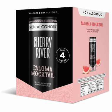 Cherry River Non-Alcoholic Paloma Mocktail. Tequila Paloma-Style Sparkling Beverage. Ready to drink.