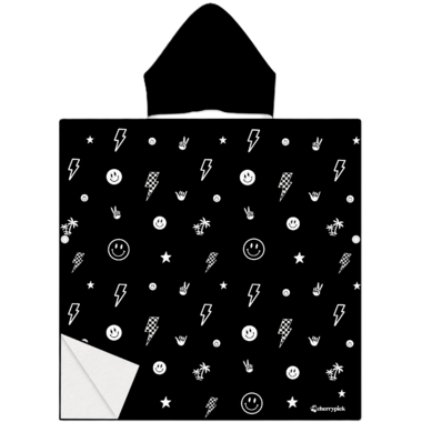 Cherrypick Kids Hooded Beach Poncho Monochrome Smiley