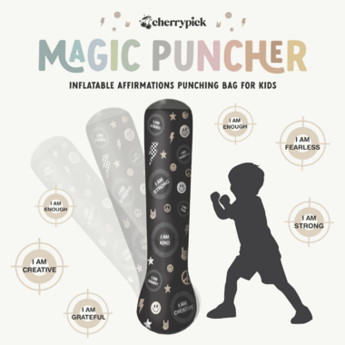 Cherrypick's new Magic Puncher is a fun, safe way for kids to release big energy and big feelings through active play. This inflatable bop bag encourages movement, coordination, and confidence, with empowering affirmations printed right on the surface to promote positive self-talk while they play.