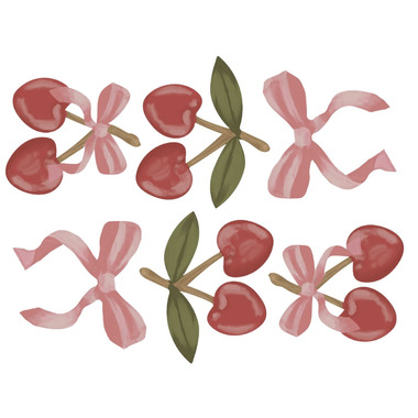 Cherries & Bows set includes 60 decal stickers. Full sheet size: 100x30cm.
