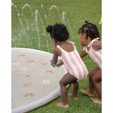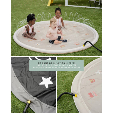 Turn your backyard into a water wonderland with Cherrypicks oversized sprinkler splash pad. Just hook it up to a standard garden hose and let the good times flow! Designed to spark joy, movement, and sensory exploration, its the perfect way for kids to stay active, cool, and curious all summer long. From backyard playdates to sunny solo adventures, this splash pad turns everyday moments into splash-tastic memories and keeps kids moving, laughing, and learning through play.