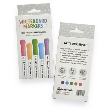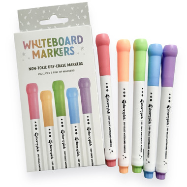 Bring your ideas to life with this pack of 5 fine-tip, non-toxic whiteboard markers. Perfect for doodling, learning, and everything in between.