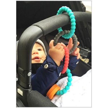 • Multi use silicone links are perfect for attaching toys and teethers to high chairs, strollers, and more.