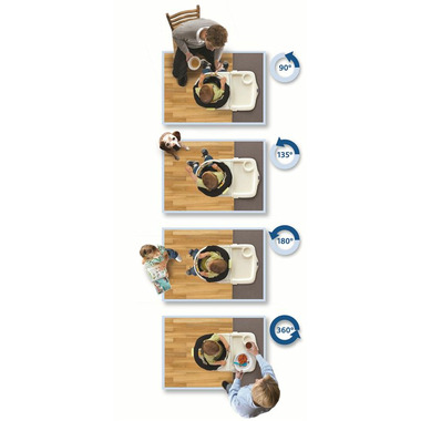 Chicco 360 is the only table seat which can rotate through 360 degrees so that mother and baby never lose sight of each other. This innovative seat locks in 6 positions for happy and interactive mealtimes. Safely secures to most tables in seconds! Easy clean up with snap-on serving tray and washable fabric seat pad. Great for picnics, restaurants, and the grandparents! Includes zippered carry bag.