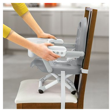 The Chicco Pocket Snack Booster Seat is the perfect way to bring kids to the table, at home or away. The convenient carry strap and compact fold make this seat easy to take along to restaurants, on vacation, or just visiting family. Pocket Snack features easy-to-clean surfaces, three tray positions, three height adjustments and a three-point harness. Two straps secure it to most dining chairs and rubberized feet help keep it from slipping. For children up to 50 lbs.