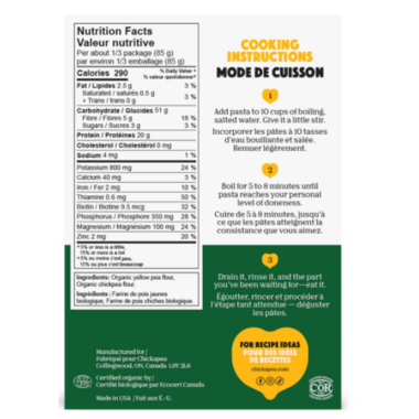 Good with every bite. Chickapea Organic Shells Pasta is made with only chickpeas and lentils.