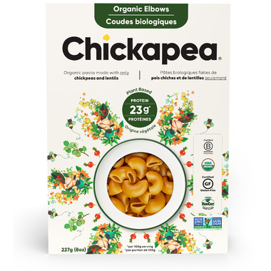 Good with every bite. Chickapea organic pasta made with only chickpeas and lentils. Organic Elbows is plant based and contains 23g of protein per serving.
