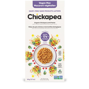 Good with every bite. Chickapea Vegan Mac is made with plant based ingredients and dairy free! Organic chickpea and lentil pasta with creamy sweet potato and pumpkin sauce