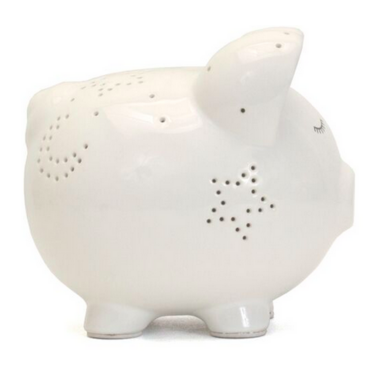 The perfect night-time companion, this adorable piggy will keep your little one feeling safe and sound in the wee hours of the night. Featuring a hard durable shell perforated with a sweet constellation design, this LED powered night light is a must-have decorative accent for the nursery. 2 AA batteries included. 7” x 5.5” x 6.25”.