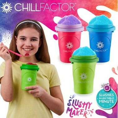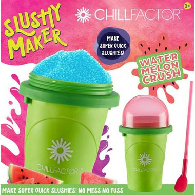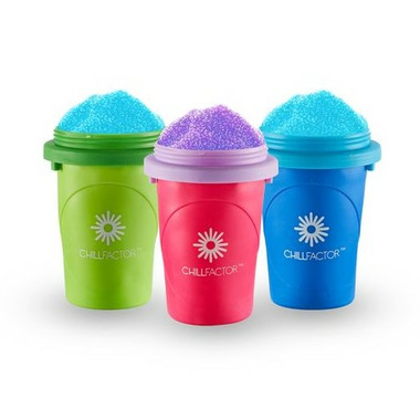 The Chill Factor Slushy Maker allows you to make delicious slushies' in seconds! No ice, no blenders, no mess! So easy to use, all you have to do is put in the freezer, wait for it to freeze then add your preferred chilled drink and squeeze!Right before your eyes you will see slushy appear in seconds! Simply freeze, squeeze and enjoy!Once you have made your slushy you can use the reusable spoon straw included to enjoy! The Chill Factor Slushy Maker is transportable so you can enjoy your slushy anywhere once made! You can create slushies' from all your favourite chilled  drinks. Use natural fruit juices to make yummy and healthy slushies. The Slushy Maker is reusable. Simply wash in warm soapy water after each use, re freeze and its ready for you to make your next slushy. Use your slushy maker time and time-with Chill Factor the fun never ends!