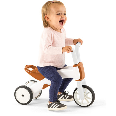 The Chillafish Bunzi 2-in-1 gradual balance bike and tricycle is uniquely designed to help teach your child balance at its own pace in a fun way. Your child learns to balance step by step on 3 wheels and when it's ready, on 2 wheels. Made of high-quality ABS material, the frame can switch between a 3-wheel mode to a 2-wheel mode in just a few seconds; no tools required. The back wheels in 3-wheel mode still offer more stability, but are purposely close to each other, hence less stable than a traditional 4-wheel ride-on, so your child feels in control of his own balance.