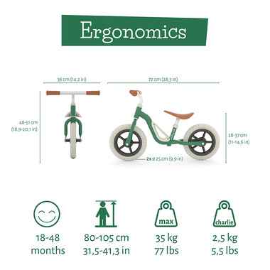 - Lightweight metal frame: only 5.5 lbs / 2.5 kg - the light weight makes the bike easy to handle and train the gross motor skills of your toddler.