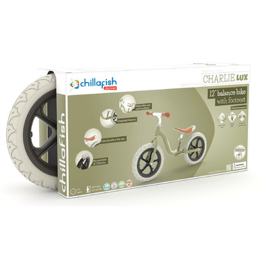 Chillafish Charlie Lux is a hyper lightweight 12" balance trainer with puncture-proof tires and a high-quality metal frame weighing only 6,6 lbs / 3 kg. The perfect toy to train your toddler gross motor skills, balance and steering. The custom molded comfort seat and handlebar are easily adjustable in height.