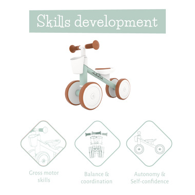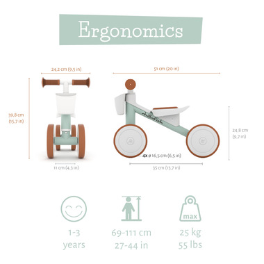 - Stylish ride-on toy for learning the first rides in a fun and safe way.