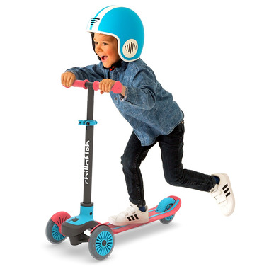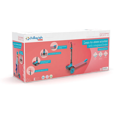 Scotti is the Chillafish interpretation of the classic 3-wheel scooter. This lightweight scooter for kids age 3 and up is a re-invention of the lean-to-steer scooter, featuring signature twintip deck with integrated foot brake. The handlebar comes off in a snap without tools so you can easily take Scotti along to friends or to the park. Adjust the height to suit small kids and tall friends - the handlebar can adjust from 52cm to 72cm (from the ground). The high quality ABEC-5 wheels make you roll like you'll never stop and the comfy hand grips feel like you'll never want to let go. The deck is lightweight yet strong, for kids and adults up to 50kg.