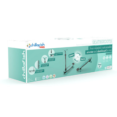Chillafish SkatieSkootie is a 4-wheeled 2-in-1 skateboard and lean-to-steer scooter. The 4-wheel elongated wheelbase and the detachable stability handlebar are developed for easy control and stability and this makes it perfect for younger children to safely learn to balance and skate. For kids with no experience in skating, they can hold on to a handlebar to master the balance at first and later take off the handlebar to have a first skateboard. So when they are ready: just turn, unlock and pull, no tools needed to take off the handlebar.