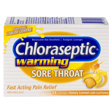 Chloraseptic Fast Acting Pain Relief Warming Sore Throat Lozenges with soothing liquid centre provide fast acting pain relief of sore throat pain. Numbs in seconds as lozenge dissolves; great for on-the-go relief. When used as directed, Chloraseptic provides safe, effective and fast relief.