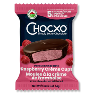 Indulge in the perfect harmony of flavors with ChocXO's luxurious 58% cacao organic dark milk chocolate, a delicate raspberry creme center crafted from organic raspberries and a touch of velvety white chocolate. Each bite offers a delightful balance of smooth richness and natural tartness. With only 5 grams of sugar per cup, their chocolatiers creation is a guilt-free indulgence you'll savor.