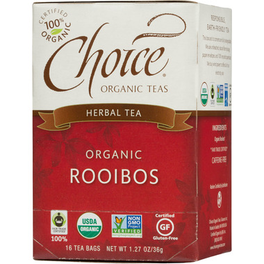 Warm yourself to the core with this earthy favourite. Rooibos is a caffeine-free herb native to South Africa, where it’s been embraced for its restorative qualities for centuries. Choice Organic Teas' russet-hued cup stands apart with a richness that suggests vanilla and honey for a delicious way to relax.