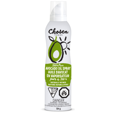Chosen Foods' 100% Pure Avocado Oil Spray is the perfect kitchen companion. This naturally non-stick all-purpose spray has a smooth neutral taste that puts your food's flavor center stage (like it ought to be).