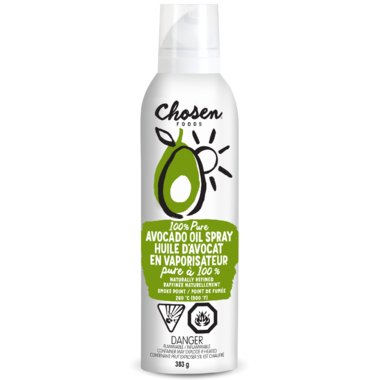 Chosen Foods' 100% Pure Avocado Oil Spray is the perfect kitchen companion. This naturally non-stick all-purpose spray has a smooth neutral taste that puts your food's flavor center stage (like it ought to be).