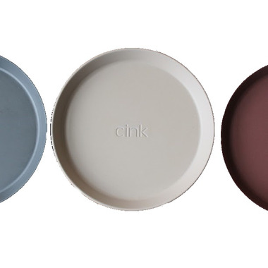 Cink bamboo plate 3 pack, in colours Fog, Beet and Ocean.