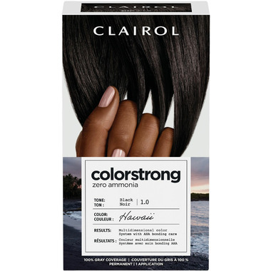 TRANSPORT YOUR HAIR COLOR TO A NEW DIMENSION. Clairol ColorStrong gives you multidimensional color and helps reinforce the internal structure of your hair.* What's the secret? The continuous system with color + bonding has AHA in every step: Bonding Primer, Permanent Color and Bonding Treatment. Zero ammonia + 100% gray coverage. Sublimely multidimensional color. *ColorStrong full kit vs. ColorStrong color step only.