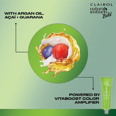With argan oil, aa and guarana extracts and VitaBoost Color Amplifier, get smooth & moisturized hair with bold color. 0% ammonia, and no animal derived ingredients. It's ideal for dark bases and all hair types & textures.