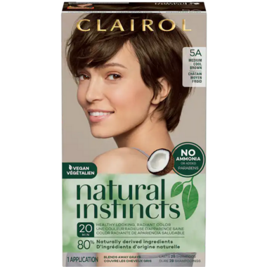 • With ingredients of coconut and aloe vera, no ammonia or added parabens, and 80% naturally-derived ingredients, introducing New Clairol Natural Instincts. A rush of natural colour that helps you share your shine with the world