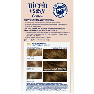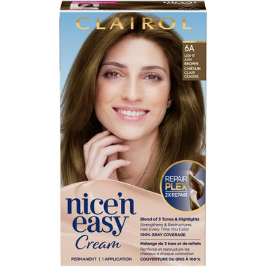 Clairol Nice n’ Easy permanent hair dye with a blend of 3 tones and highlights is a non-drip color cream designed for superior natural looking color.