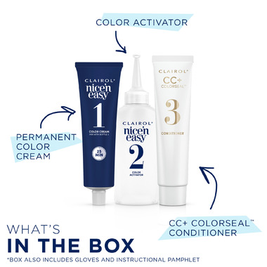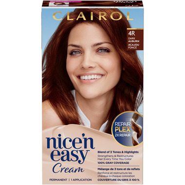 Clairol Nice n’ Easy permanent hair dye with a blend of 3 tones and highlights is a non-drip color cream designed for superior natural looking color.
