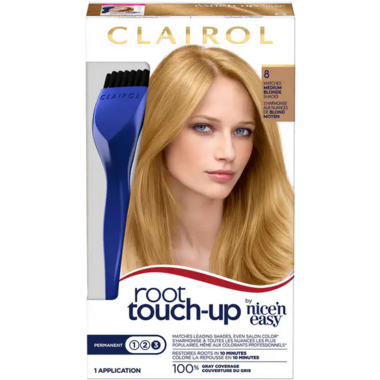 Root Touch-Up by Nice‘n Easy blends with leading shades, even salon shades in just 10 minutes.The ergonomically engineered brush delivers salon quality application. No roots, no greys, no trip to the salon.