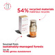 54% recycled materials. Sourced from sustainably-managed forests.