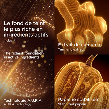 Within the [COLOUR] phase, new A.U.R.A. (Advanced Ultra Radiance Amplifier) technology with light-boosting ingredients and illuminating microcrystals, helping to give an immediate glow effect.