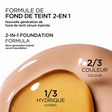 A next generation hybrid serum foundation whose groundbreaking fusion of makeup and skincare offers a new level of youthful radiance. Thanks to its adjustable dial, it provides weightless, customizable, medium-to-full coverage, with a luminous, satin, non-oily finish in 37 shades for all skin types and skin tones.