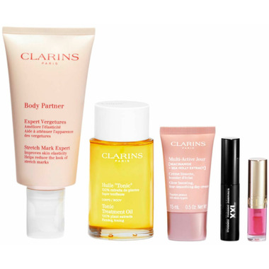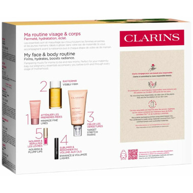 This maternity set brings together beauty essentials to support expecting and new mothers throughout pregnancy and beyond. For the face, a revitalizing day cream enriched with teasel extract restores radiance and hydration, paired with a nourishing lip oil and a volumizing mascara for a natural glow. For the body, an expert stretch mark treatment helps reduce their appearance, while a firming oil keeps the skin supple and toned when used daily, during and after pregnancy.