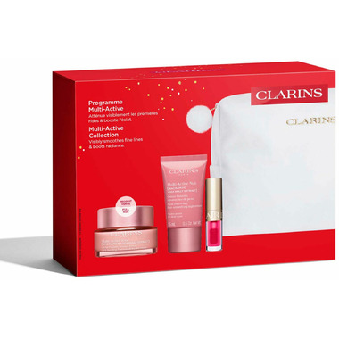 This set offers a complete skincare routine for women who want to reduce the appearance of their first signs of ageing. Multi-Active Day Cream, formulated with a powerful [niacinamide + sea holly extract] duo, helps reduce the first visible signs of ageing. To complete your routine, Multi-Active Night Cream helps ensure your skin glows when you wake up in the morning: the night is the optimal time to encourage skin renewal. This skincare ritual helps to hydrate the skin while preserving its youthfulness. Not to mention the iconic new-generation Double Serum, a comprehensive treatment that target signs of ageing, helping the skin to restore vitality and luminosity. A Lip Comfort Oil completes this routine, the perfect finishing touch of beauty that leaves your lips shiny and plump. A lovely pouch made from 87% recycled fibres holds all these products. Its recyclable* case is printed on paper from sustainably managed forests. *in accordance with local regulations