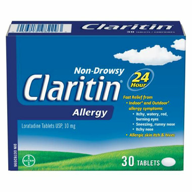 Claritin provides 24-hour Non-drowsy relief from both indoor (dust mites, animal dander, moulds) and outdoor (trees, pollen, grass, ragweed) allergy symptoms. Fast and effective relief of symptoms such as: itchy, watery, red, burning eyes; sneezing, runny nose, itchy nose, skin itch and hives. Non-drowsy formula lets you stay alert and focused throughout the day. For adults & children aged 12 yrs. and older. Each tablet contains 10 mg of loratadine.