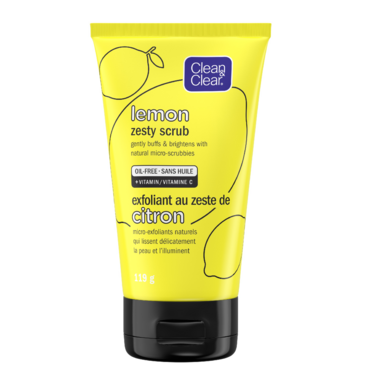 Clean & Clear Lemon Zesty Face Scrub exfoliates away roughness with the buffing power of gentle, natural micro-scrubbies. No plastic microbeads here! Made with vitamin C & naturally-derived lemon extract, this scrub is ideal to help brighten and even skin tone. For use on all skin types, including acne-prone, oily, dry, sensitive and combination skin. Made oil free.