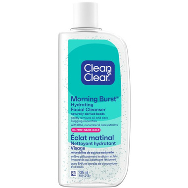 Wake up with Clean & Clear® Morning Burst® Hydrating Facial Cleanser with BHA, cucumber, and aloe extracts and gentle naturally-derived beads to gently cleanse your skin. This oil-free gentle foaming facial cleanser features a blend of BHA, cucumber and aloe extracts that work to gently remove oil and wash away pore clogging impurities while respecting skin's moisture barrier. This daily foaming face wash is formulated free of parabens, phthalates, sulfates, oils and dyes. The formula is packaged on a bottle made from 50% recycled plastic.