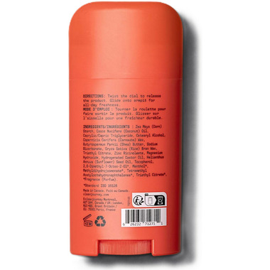 Zea Mays (Corn) Starch, Cocos Nucifera (Coconut) Oil, Caprylic/Capric Triglyceride, Cetearyl Alcohol, Copernicia Cerifera (Carnauba) Wax, Butyrospermum Parkii (Shea) Butter, Sodium Bicarbonate, Oryza Sativa (Rice) Bran Wax, Triethyl Citrate, Zinc Ricinoleate, Magnesium Hydroxide, Hydrogenated Castor Oil, Helianthus Annuus (Sunflower) Seed Oil, Tocopherol, 2,6-Dimethyl-7-Octen-2-Ol*, Menthol*, Methyldihydrojasmonate*, Tetramethyl Acetyloctahydronaphthalenes*, Triethyl Citrate*, *Fragrance (Parfum).