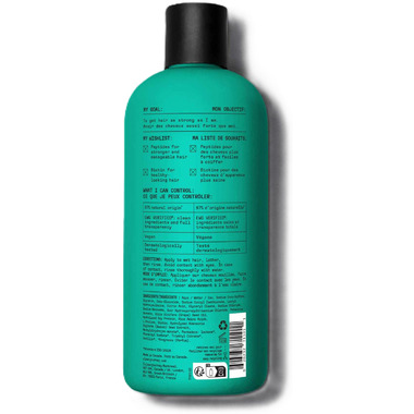 Formulated with 97% naturally derived ingredients, it combines three targeted actives for hair that looks and feels stronger. Peptides, a vegan alternative to collagen, help reinforce the hair fiber and improve manageability. Biotin, known for its revitalizing benefits, enhances overall hair appearance, while plant-based glycerin helps maintain moisture and softness.