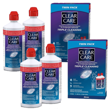 The Clear Care family of contact lens cleaning & disinfecting solutions with hydrogen peroxide are created by the leading provider of vision and eye care products. Clear Care's proprietary triple cleaning action loosens dirt, deep cleans, and forms bubbles that enhance protein removal to keep your lenses feeling like new. It contains 3% of hydrogen peroxide that provides a deep clean with bubbling action.