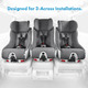 Safety performance Foonf is the mother of all car seats, designed for both revolutionary forward-facing andextended rear-facing use allowing for most kids to remain rear-facing until their fourth birthday (up to 50 lb in the USA). Engineered to protect, it comes fully loaded with Cleks most advanced safety features, including the patented REACT energy management system,a steel anti-rebound bar, rigid-LATCH for an effortlessly secure installation, and advanced side-impact protection, with deep side wings, energy-absorbing foam layers and an adjustable structural headrest. Plus, at less than 17 inches wide, Foonfs narrow design makes it easy to ride 3-across.
